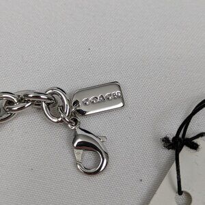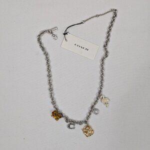 Silver colored charm necklace from Coach. Will add personality or pop to any outfit. Charms are a butterfly, coach insignia, pretze, pearl and flamingo. Smoke and pet free home. Comment with questions.