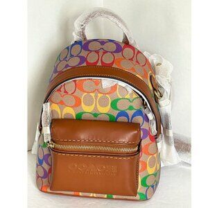 Coach Charter Backpack 18 Small Rainbow Signature Canvas Brown Leather