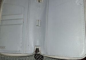coach gold and gray signature vintage checkbook has ink spots and some red and white discoloration on outside shown pictures!!