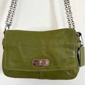 Coach Chelsea Leather Flap Bag Turnlock Convertible Crossbody Shoulder Handbag 17825 Olive Green