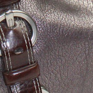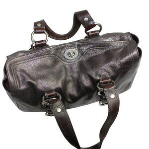 Coach Chelsea Silver Metallic Brown Accent Turn Lock Satchel