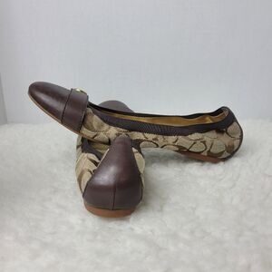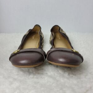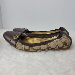 Coach Chelsey Womens Ballet Flat Size 9.5B Signature Monogram Brown CapToe