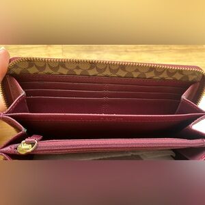 Coach Cherry Burgundy Wine Color Large Zipper Wallet