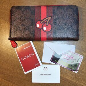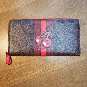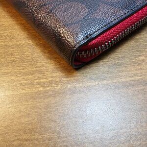 Coach True Red Brown Antique Black Signature Pac Man Accordion Zip F56718 Wallet