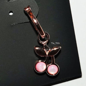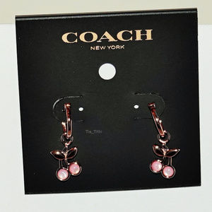 Coach cherry huggie earrings in pink/rosegold. Plated brass.