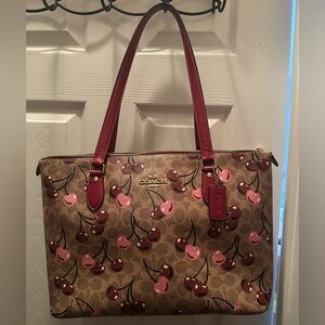 Stylish Coach tote with cherry print. Perfect for everyday use. Will work with offers!