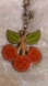 Charming Coach keychain featuring cherries and green leaves. Gold Metallic back. Ideal for bags or keys.