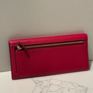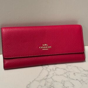 Elegant and stylish, this Coach wallet in red leather is perfect for any occasion. Its sleek design and premium quality make it a must-have accessory.