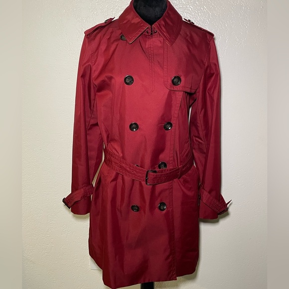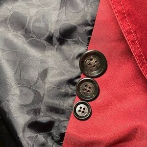 Elegant cherry red outerwear with sleek button detail. Ideal for versatile styling.
