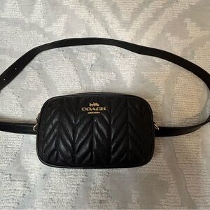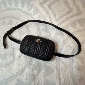 Coach Chevron Quilted Black Leather Convertible Belt Bag with Gold Hardware