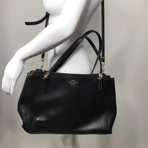 Coach Christie Black Crossgrain Leather Carry All Cross Body Hand Bag