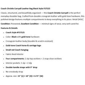 Classic, structured, and beautifully organized — this Coach Christie Carryall is the perfect everyday shoulder bag. Crafted from durable crossgrain leather with gold-tone hardware, this polished design features multiple compartments to keep everything in its place. Retail $450.