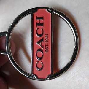 Good pre-owned condition chrome and coral bag charm/hangtag/fob. See last pic for measurement.