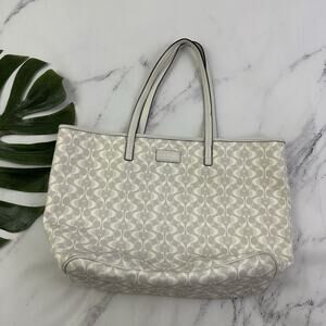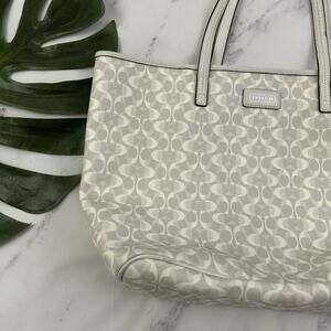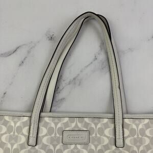 Coach City Tote Bag Purse White Gray Signature Print Coated Large Outlet
