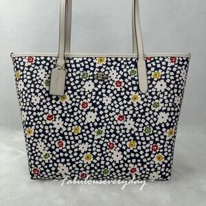 Coach City Tote Bag With Floral Print In Canvas CBI53 Deep Blue/Chalk Multi NWT