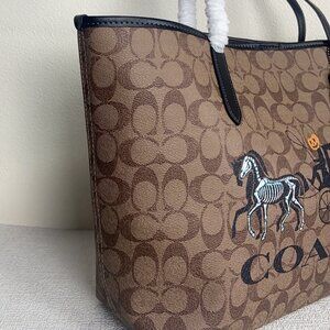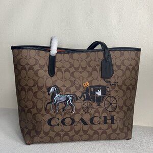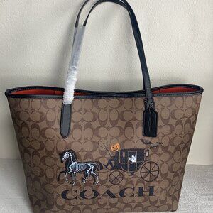 Coach City Tote In Signature Canvas With Halloween Horse And Carriage