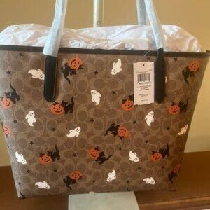 Coach City Tote In Signature Canvas With Halloween Print CW450