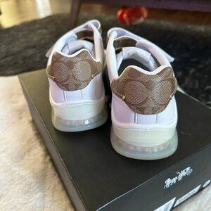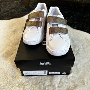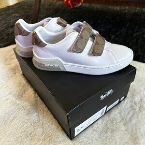 Coach Citysole Court Two Strap Sneaker in Chalk and Khaki, size 6.