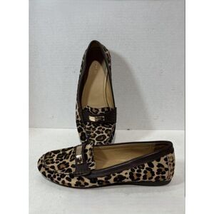 Coach Classic Leopard Print Slide On Flat W/gold & Dark Brown Women 9.5