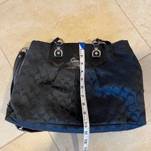 This 15x10 inch large bag is perfect for carrying all of your items with its multiple pockets and zippers. Has detachable shoulder strap. Like new condition.