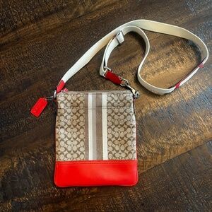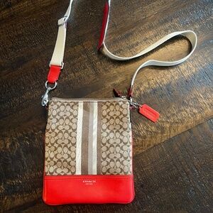 Coach Classic Signature Orange and Tan Crossbody Bag
