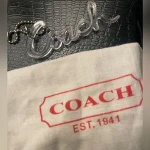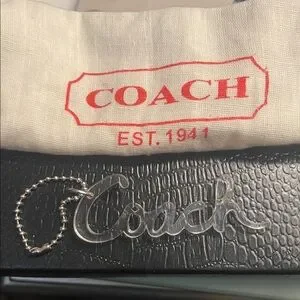 Transparent acrylic script keychain. Features bold Clear Coach logo. Lightweight and eye-catching. Easy to attach to keys or bags.