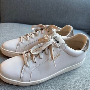 Coach Clip Low Top Sneaker Leather Cream Signature Canvas Preppy Women's 9