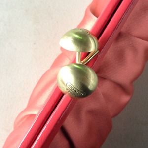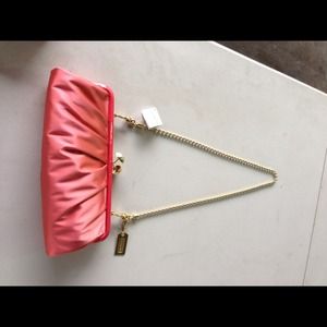 Coral Coach clutch. BNWT. Perfect pop of color for any outfit. 100% authentic. The chain can either be worn on your shoulder or tucked in.