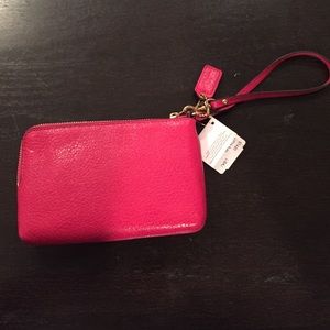 Brand new with tags Coach clutch/wristlet in fuchsia leather.