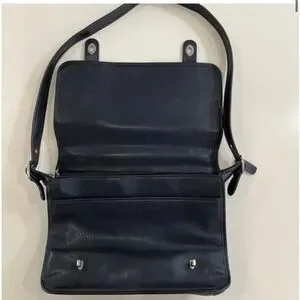 Vintage 1990s Coach Black Full Grain Genuine Leather Essex Messenger Laptop Bag