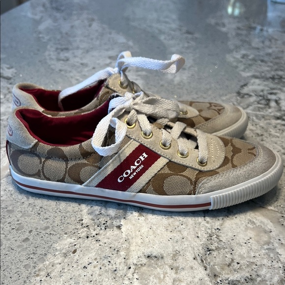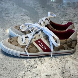 Keywords: Coach, Shoes, Sneakers, Tan, Red, Size 6, Women, sneakers