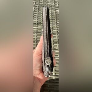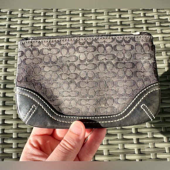 Used vintage canvas small black (a little faded) Coach pouch with a missing zipper but it still zips up fine.