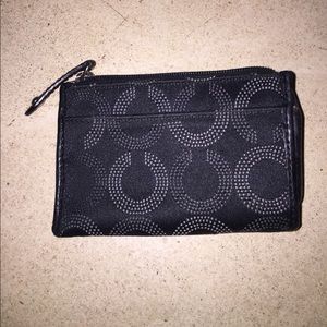 Authentic Coach Coin Purse. Great condition! Don't use anymore. Small stitch loose, pictured. Black & silver. Fabric & leather. Make an offer 😏