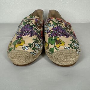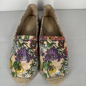 Elevate your shoe collection with these stylish Coach Collins Printed Leather Espadrille in size 7. The floral color and leather upper material make this flat shoe a perfect addition to any outfit. Designed for women, this shoe is a must-have for those who want to add a touch of elegance to their wardrobe. The espadrille style provides comfort and support while keeping your feet looking fashionable. Perfect for any occasion, these shoes are a great investment for any fashion-forward woman.
