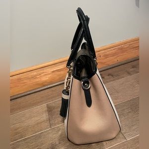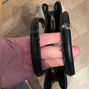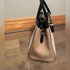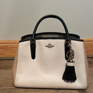 Coach color block carryall bag, cream, tan and black. In very good condition except for wear on top of carrying handles. Carrying strap never used. Non-smoking home.