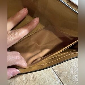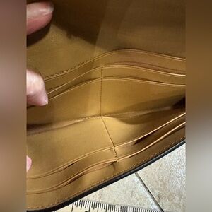 Tiny scratches/creases in leather on front closure and small ones on the inside by the button: 3rd pic & 10th pic