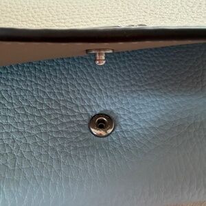 Coach Colorblock Slim Trifold Leather Snap Wallet in Chalk/Waterfall