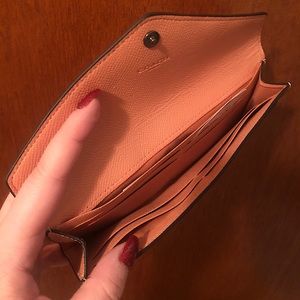 @thrifty_barbie Hello! Thanks for your interest. The pictures show the coin pocket on the back. In addition, there are 8 credit card slots with additional info under the details section. I have added a photo of the inside as well.