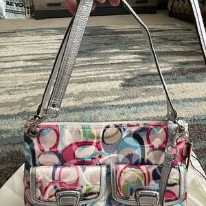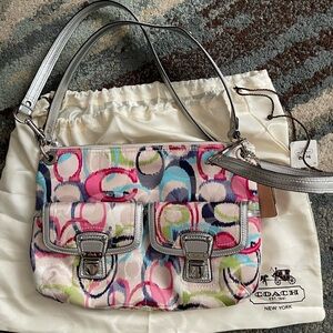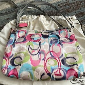 Coach Colorful Patterned Shoulder Bag with Silver Accents