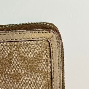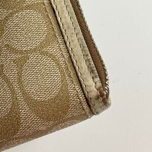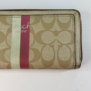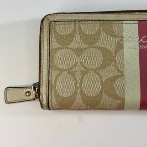 Coach Continental Wallet Brown Pink Designer Leather Signature Stripe Zip Around