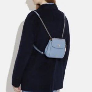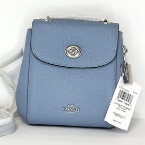Coach Convertible Pebble Leather Mini Backpack Crossbody Silver/Blue NWT