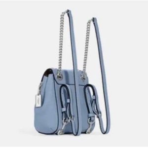 NWT Coach Convertible Pebble Leather Mini Backpack Crossbody Silver/Cornflower Blue MSRP $350