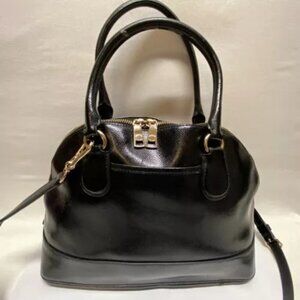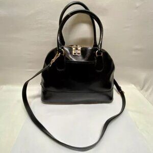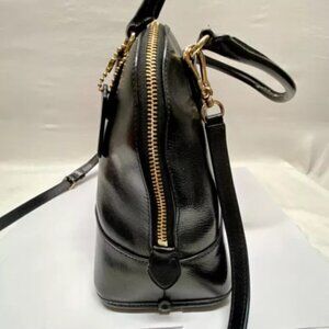 Coach Cora F36703 Patent Crossgrain Leather Black Gold Convertible Shoulder Bag