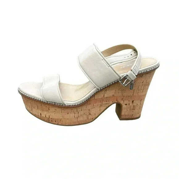 Coach Cork Heel Sandal Leather Platform Chalk Beige Quartz Sandals 9