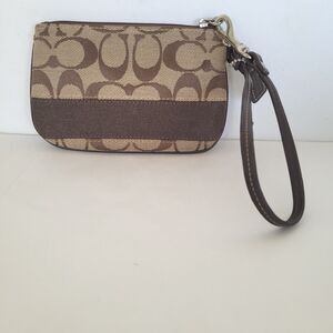 Coach Corner Small Bag Wristlet Purse Beige Brown Clutch wallet Pouch Signature