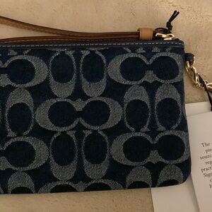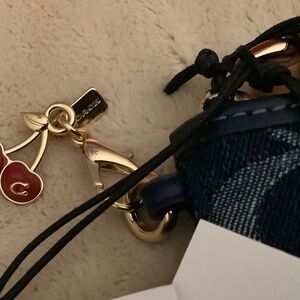 COACH Signature DENIM Corner Zip Wristlet w/Cherry Charm