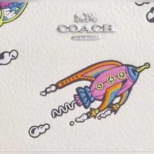 Coach Corner Zip Wristlet In Cosmic Rocket Print, Pebble Leather, New W/out Tags
