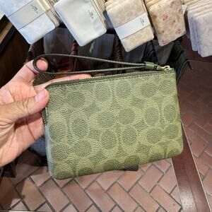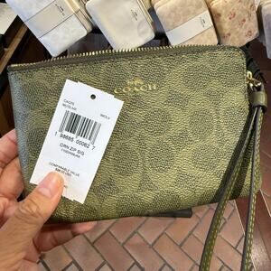 Coach Corner Zip Wristlet In Signature Canvas CAQ75 Gold/Olive