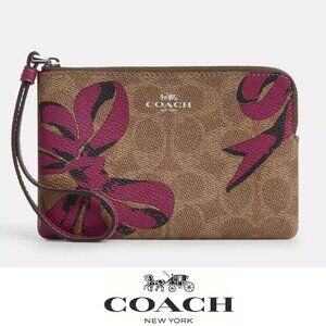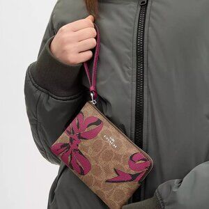 🎁 Coach Corner Zip Wristlet In Signature Canvas With Bow Print