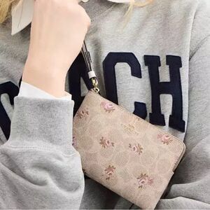Coach Corner Zip Wristlet In Signature Canvas With Floral Print